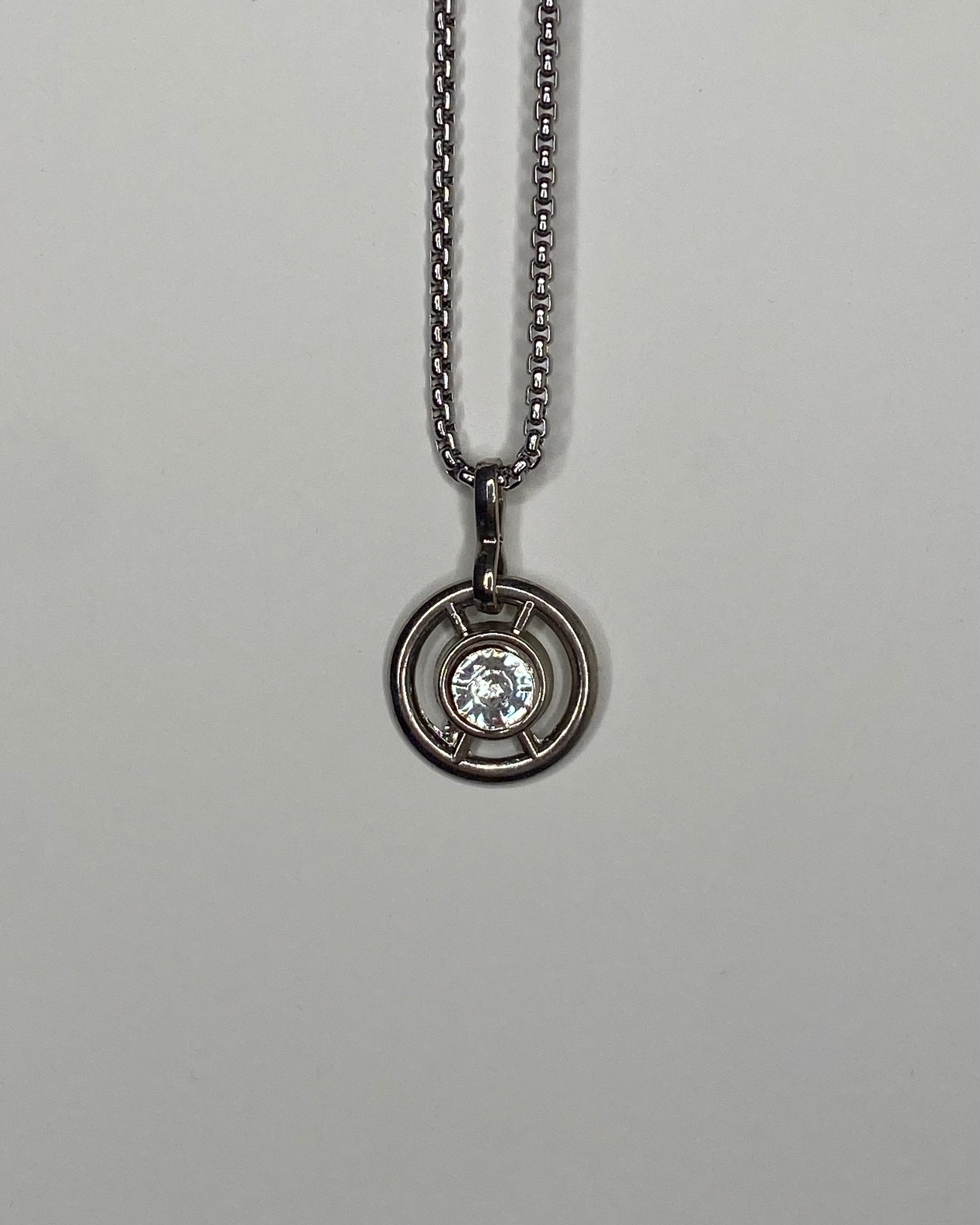 16” box chain and hollow ring pendant with an x in the middle and rhinestone at the center.